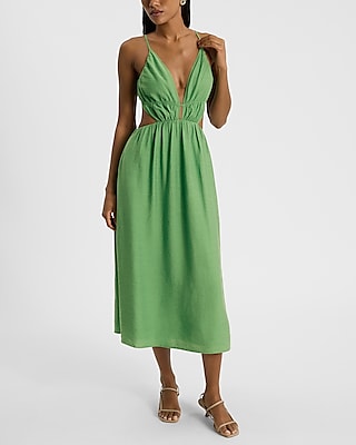 Satin V-Neck Sleeveless Tie Waist Surplice Midi Dress