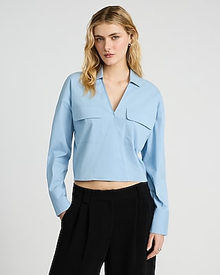 V-Neck Collared Surplice Cropped Top