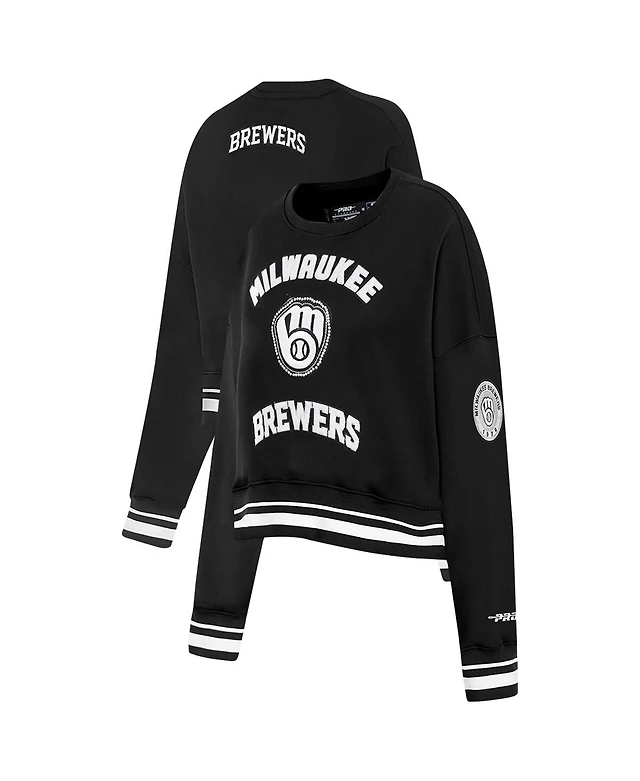 Pro Standard Women's Black Milwaukee Brewers Cultivated-Pearl Cropped Pullover Sweatshirt