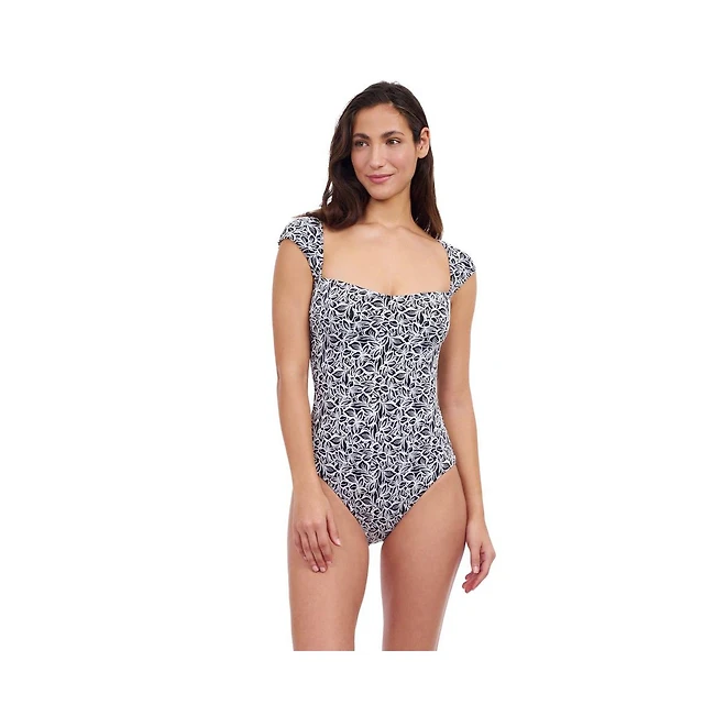 Profile by Gottex Women's Plumeria Cap Sleeve Shaped Bust One Piece