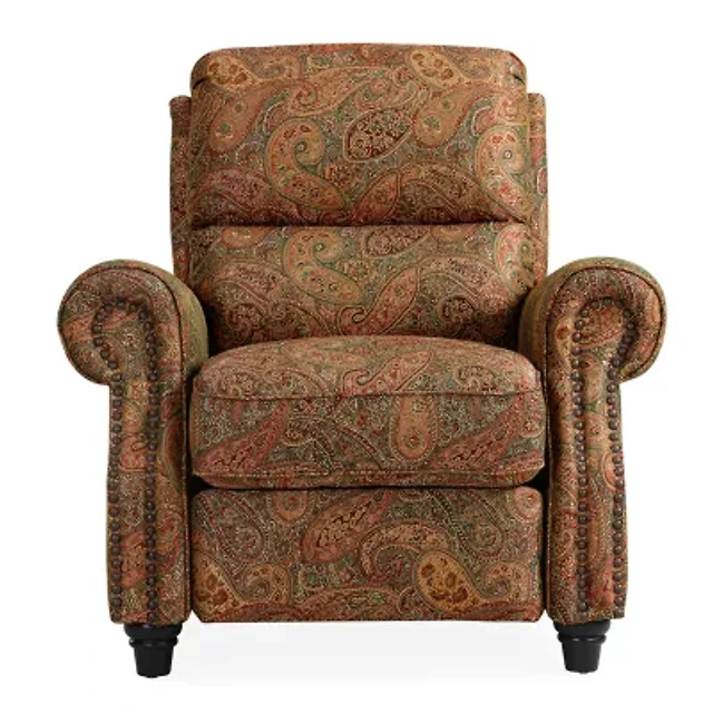 ProLounger Anna Traditional Roll-Arm Push Back Recliner in Multi-Burgundy Paisley with Nailheads