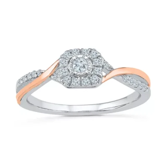 Promise My Love Womens 1/8 CT. T.W. Natural White Diamond 10K Rose Gold Cushion Side Stone Ring