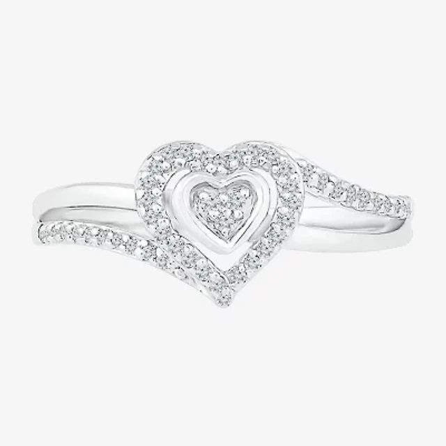Promise My Love Womens 1/6 CT. T.W. Natural White Diamond Sterling Silver Heart Side Stone Halo Ring