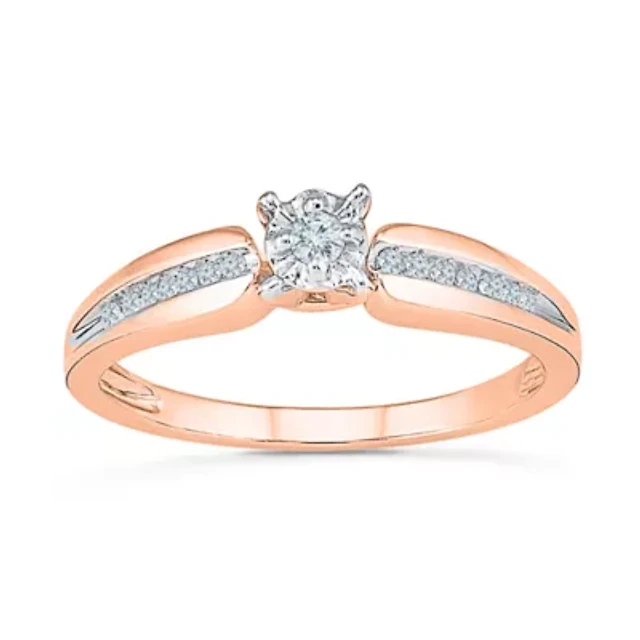 Promise My Love Womens 1/4 CT. T.W. Natural White Diamond 10K Rose Gold Over Silver Sterling Round Side Stone Ring