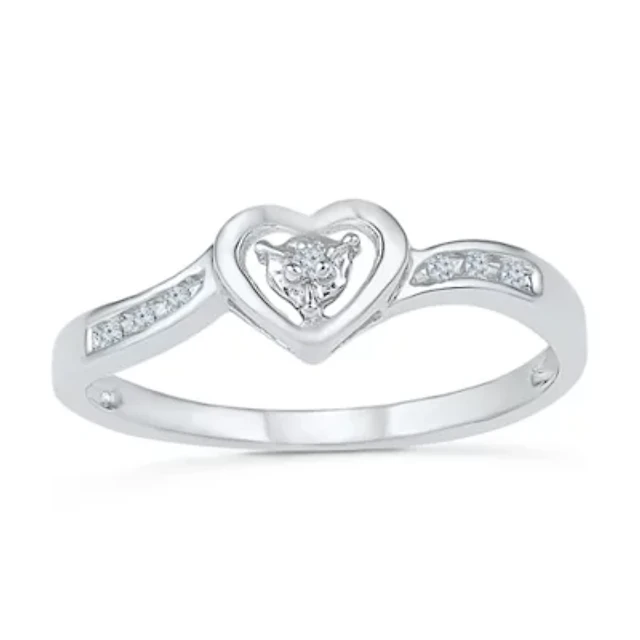 Promise My Love Womens Diamond Accent Natural White Sterling Silver Heart Side Stone Ring
