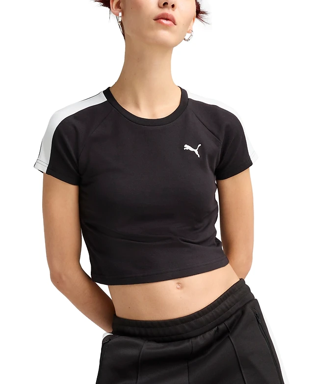 Puma Women's T7 Stripe Crewneck Cropped Baby T-Shirt