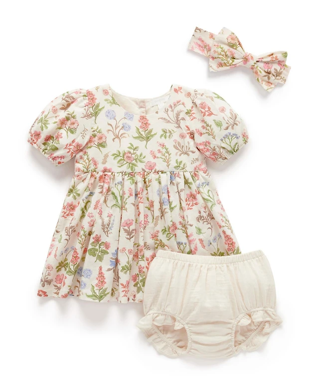 Purebaby Baby Girls Linen Blend Dress & Headband Set