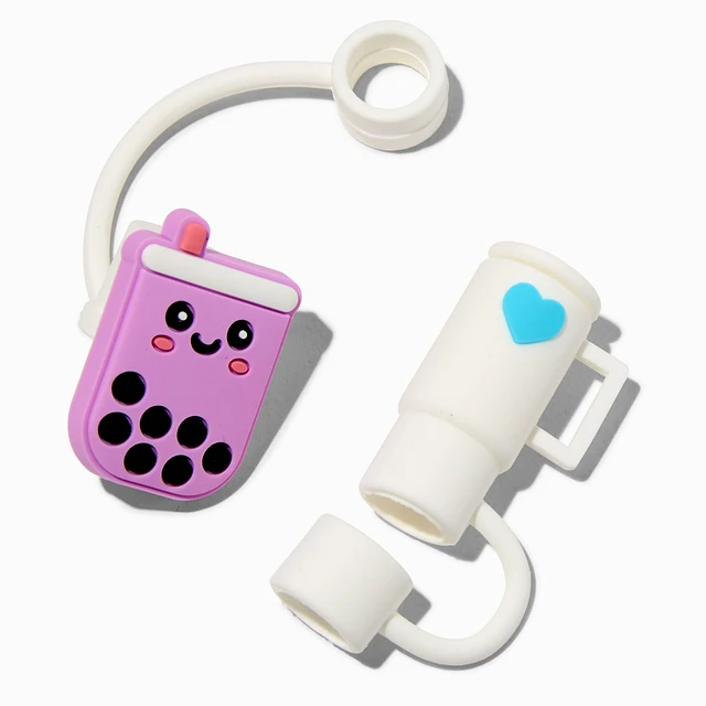 Purple Boba Tea & White Cup Straw Covers - 2 Pack