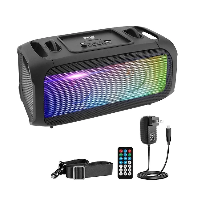 Pyle Wireless Bluetooth BoomBox Stereo Speaker System with Full Panel Led Lights, Fm Radio, and Microphone Input