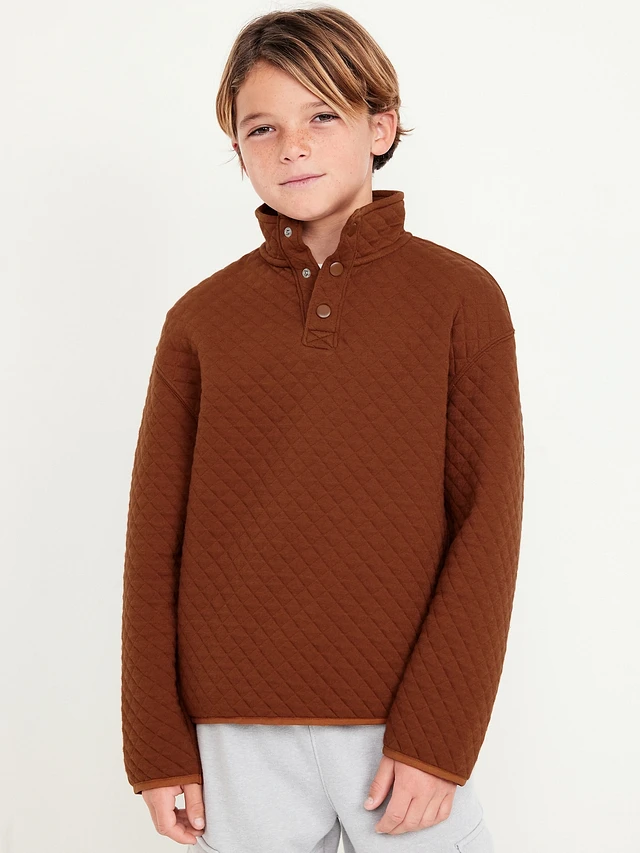 Quarter-Snap Quilted Jersey-Knit Sweatshirt for Boys