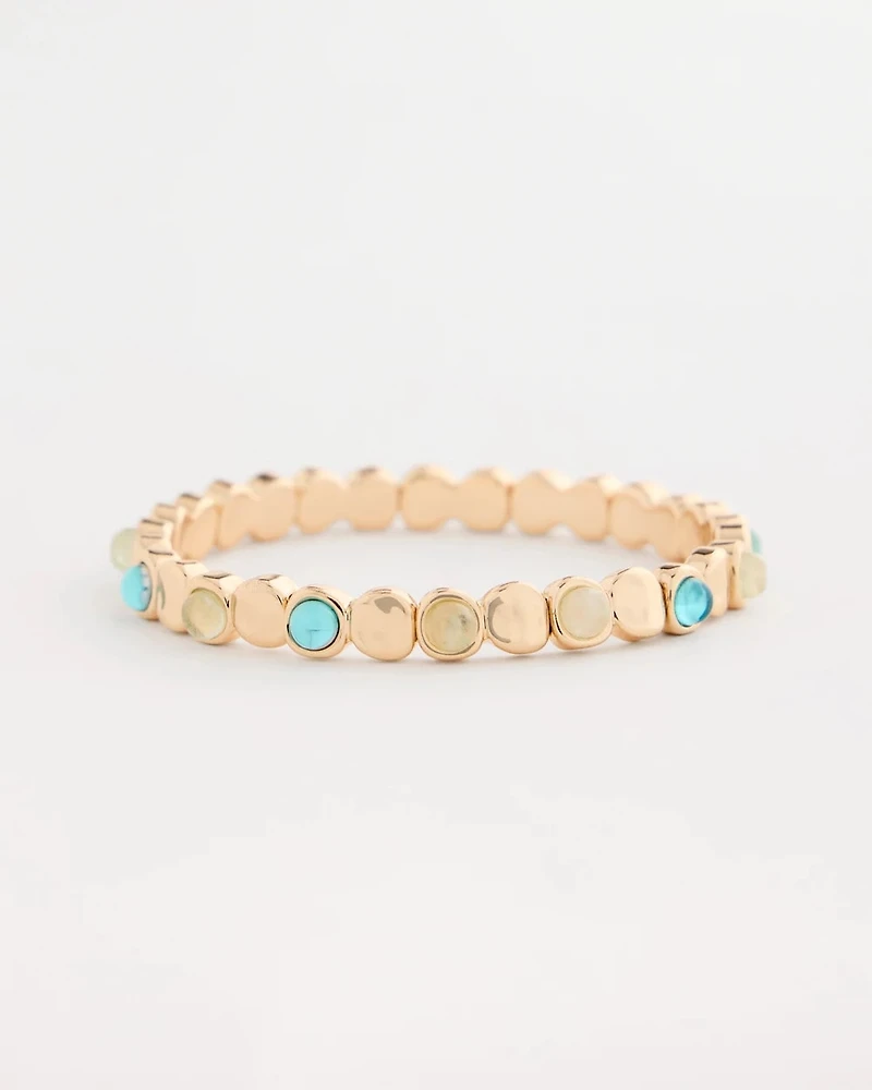Light blue hues and genuine quartz stone help define this easy to wear, perfectly stackable stretch bracelet. Pair with other bracelets from our bracelet bar from this season and beyond.