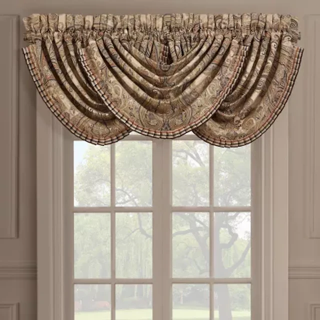 Ellis Curtain Paisley Prism Duchess 3" Rod Pocket Valances for Windows 100" x 30" Latte