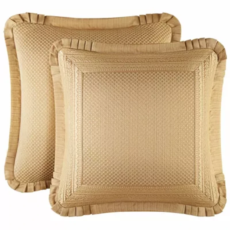 The Euro shams add dimension and drama to the ensemble. The ornate border is used as a frame on four sides of the delicate diamond trellis fabric and are finished with 1.5" satin flange with rounded, pleated corners. The large-scale pillows reverses to the diamond trellis and use hidden zippers as closures.