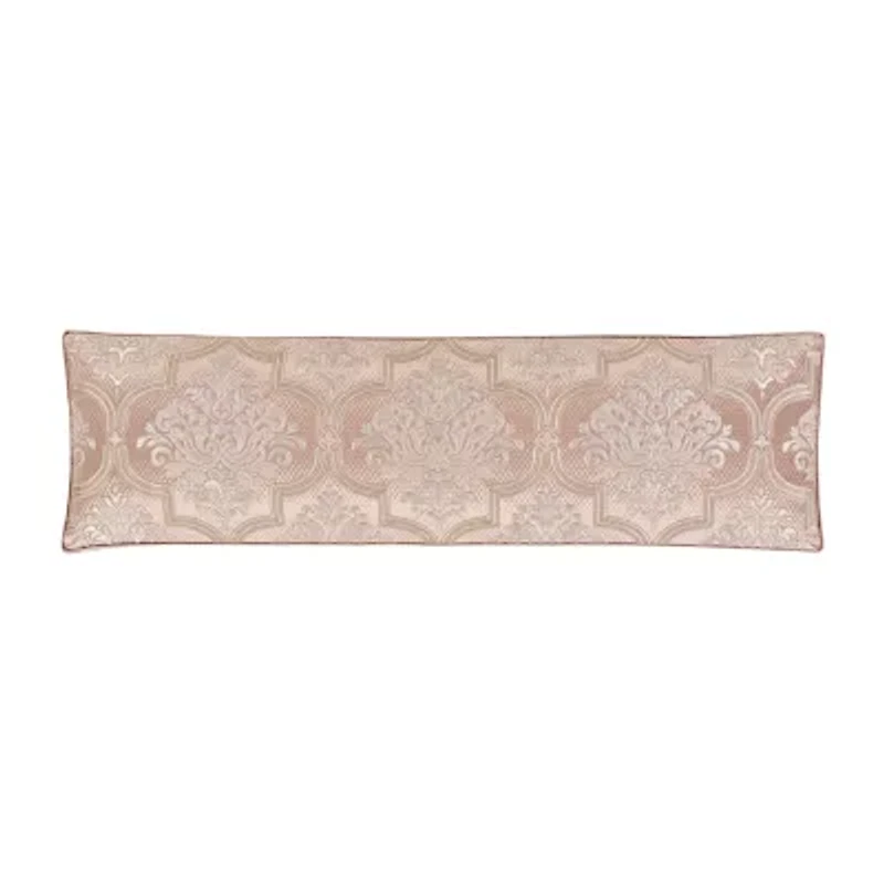 The Rosalia reading bolster adds a "luxury hotel" dimension to the collection of decorative pillows offered. The oversized accent pillow spans the width of the bed and is perfect for propping up when reading. It is a reversible pillow, featuring a classic damask pattern in lovely blush, rose and gold hues. Created with a 2 �" gusset for added loft and support and it is finished with delicate soft satin piping.