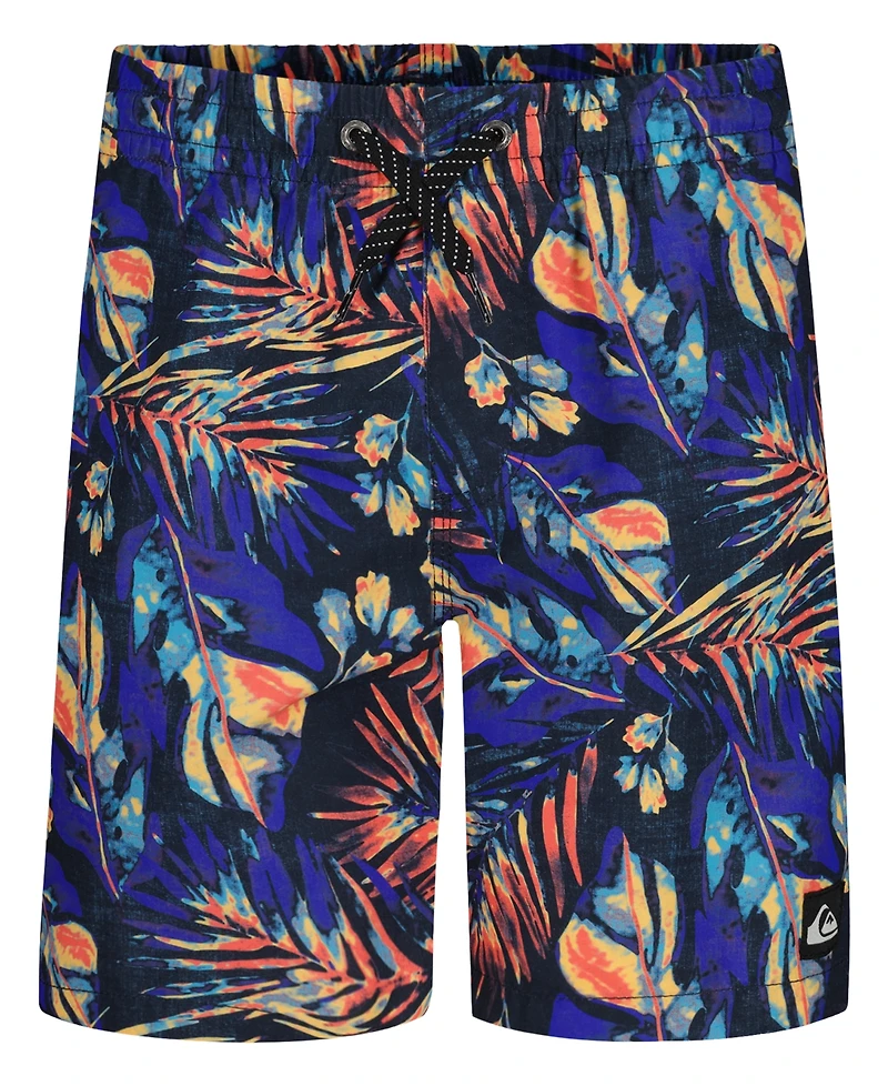 Splashed with a vivid tropical print, these Quiksilver volley shorts pack bold beach energy into casual wear. An elasticized drawstring waist and scalloped hem keep the pair relaxed and movement unrestricted.