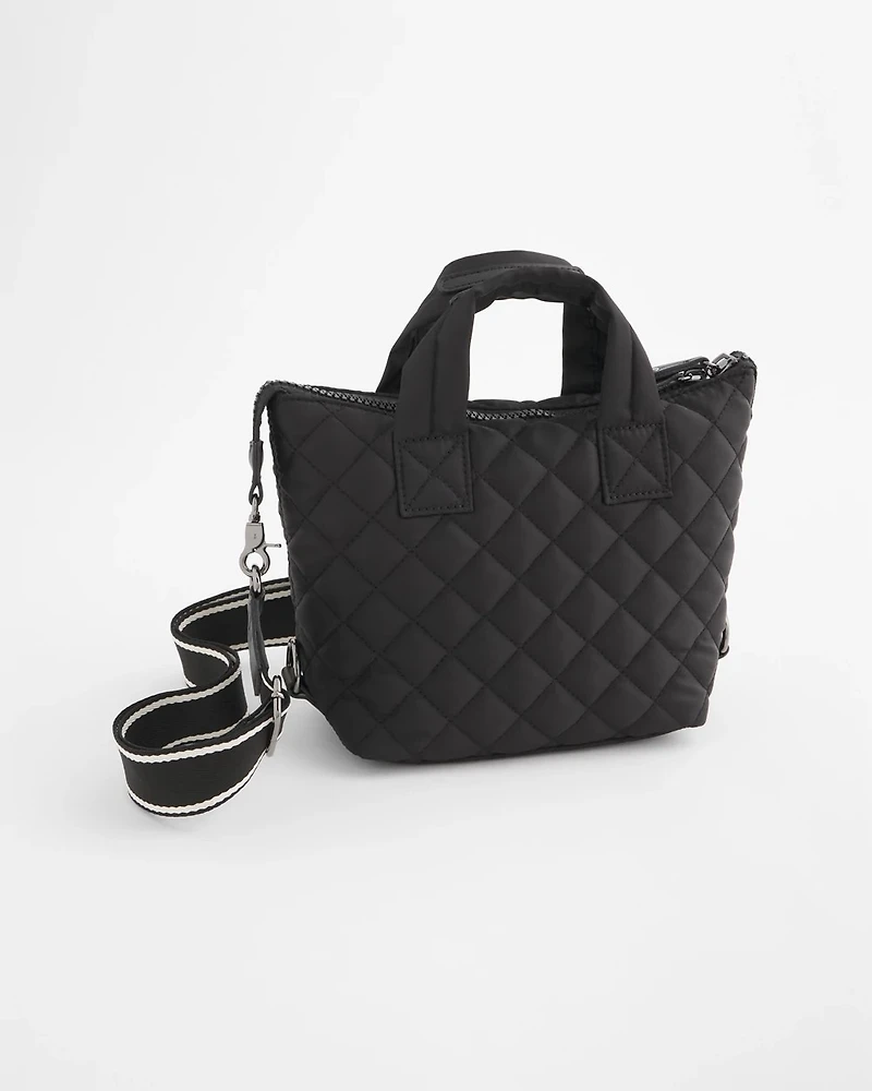 The perfect travel bag. Our Chico’s Quilted Cross Body Sport Tote Bag will add a sporty chic finishing touch to any look. Zip closure, zipper pocket on the inside, and two bigger pockets inside.