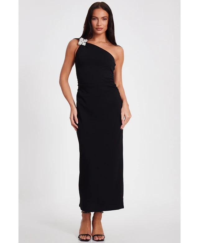Quiz Women's Asymmetric Scuba Crepe Maxi Dress with Embellished Detail