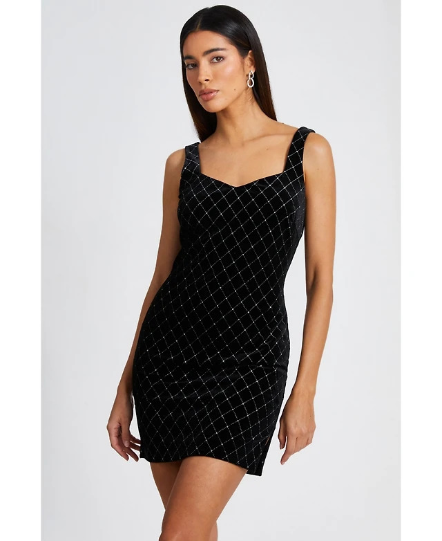 Quiz Women's Diamonte Velvet Bodycon Mini Dress