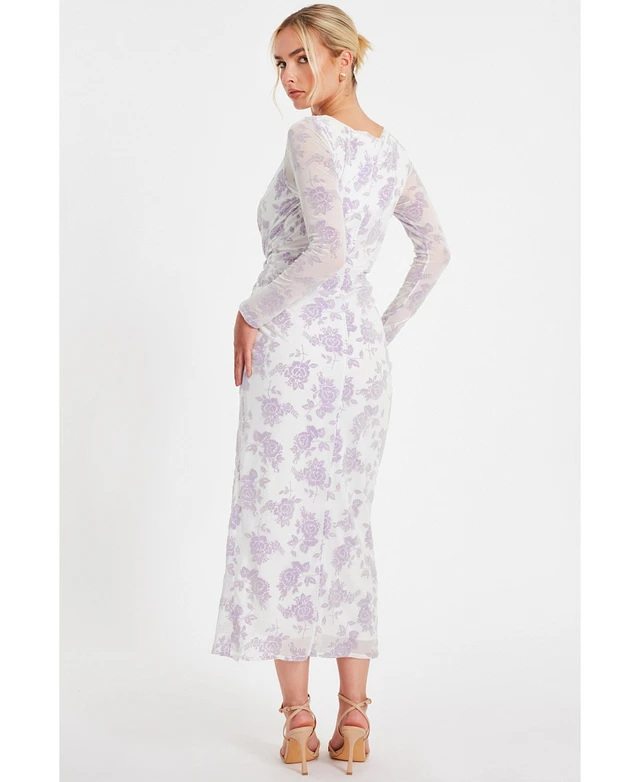 Quiz Women's Mesh Floral Long Sleeve Maxi Dress