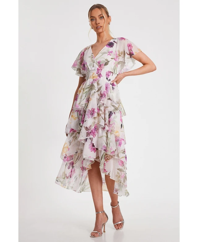 Quiz Women's Floral Chiffon Tiered Maxi Dress