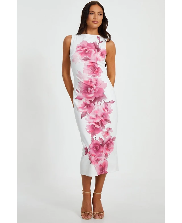 Quiz Women's Floral Print Scuba Crepe Maxi Dress