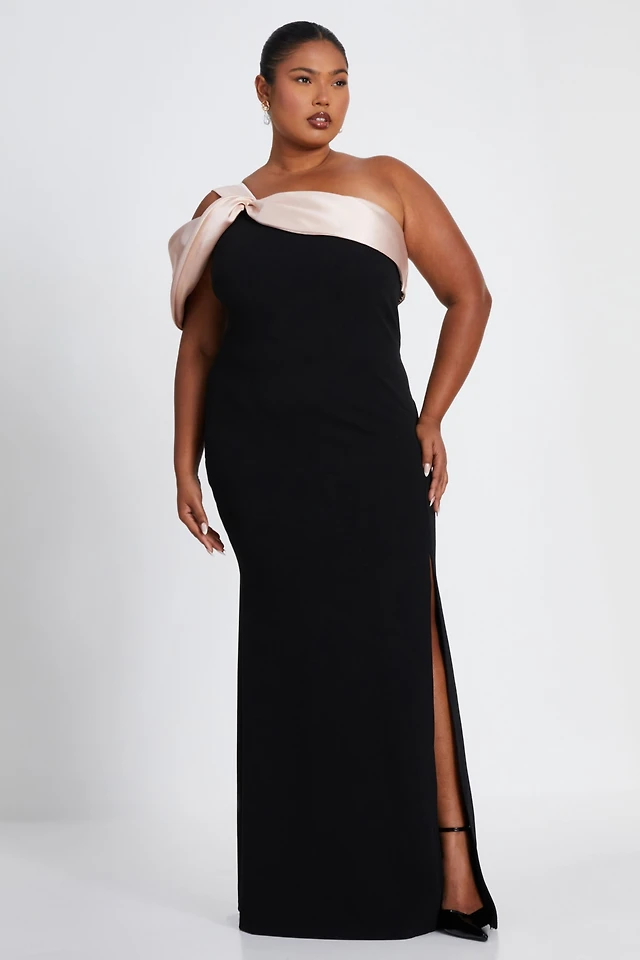 Betsy & Adam Women's One-Shoulder Scuba Crepe Gown