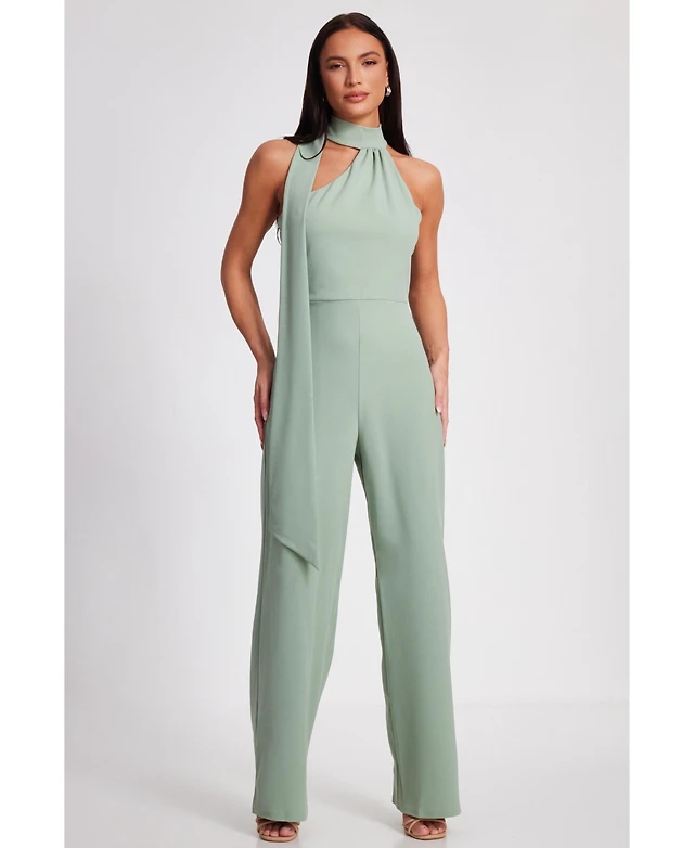 Quiz Women's Scuba Crepe Halter Neck Jumpsuit With Scarf Tie Detail
