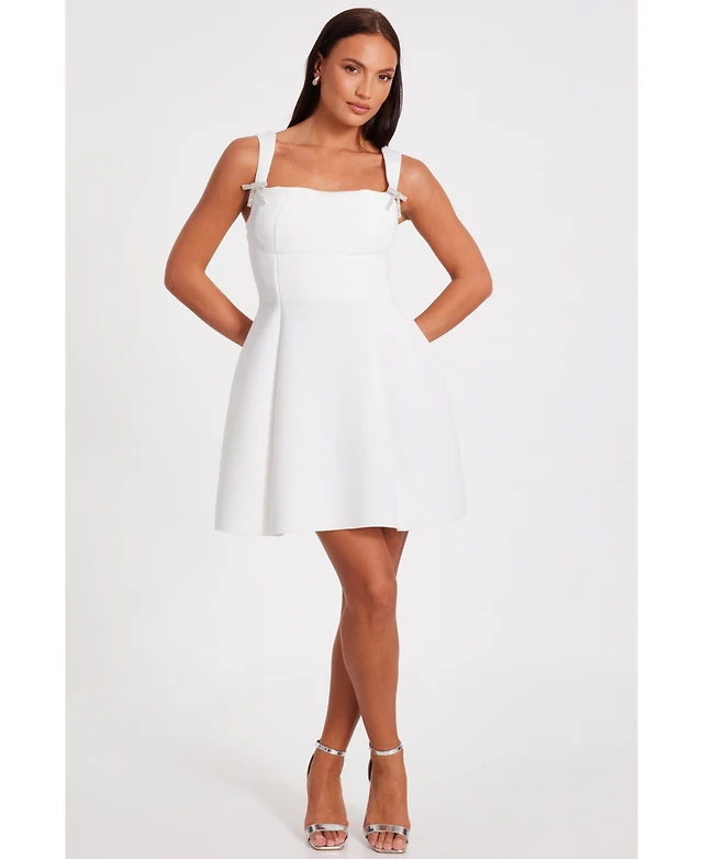 Quiz Women's Scuba Foam Mini Dress with Diamante Bow Detail