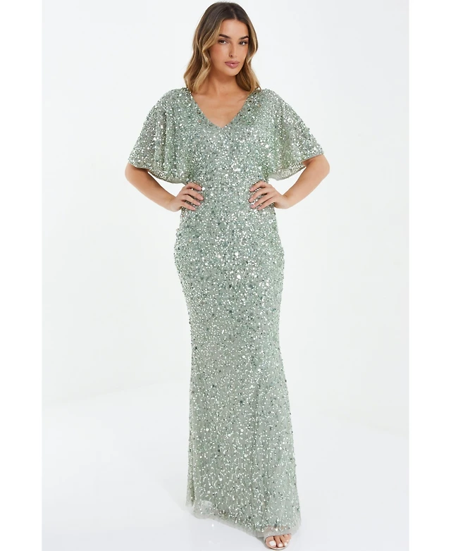 Quiz Women's Sequin Cape Sleeve Maxi Dress