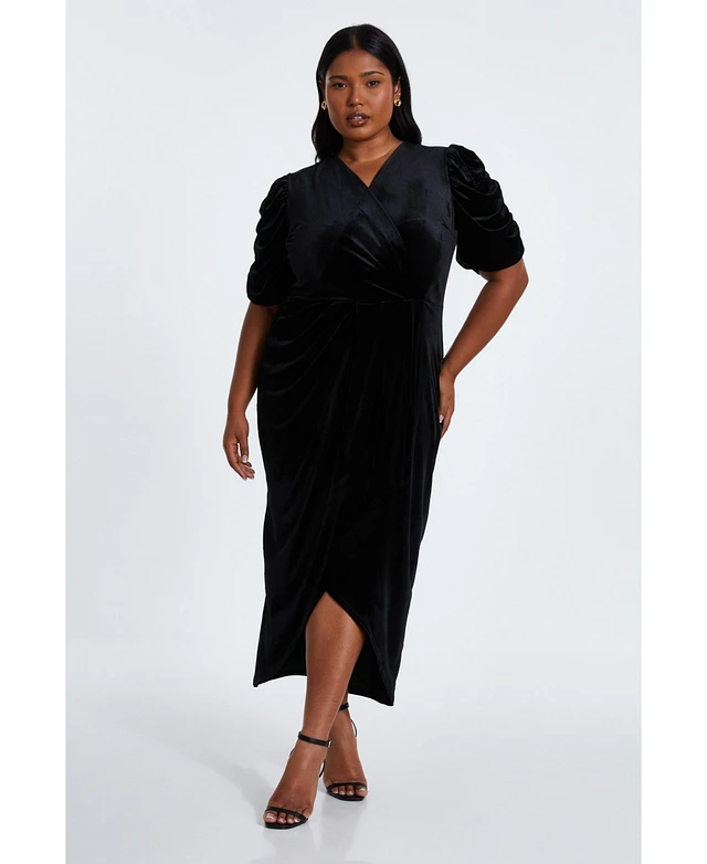 Coast Women's Satin Back Crepe Ruffle Wrap Midi Dress