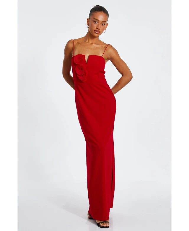Quiz Women's Scuba Crepe Contrast Corsage Maxi Dress