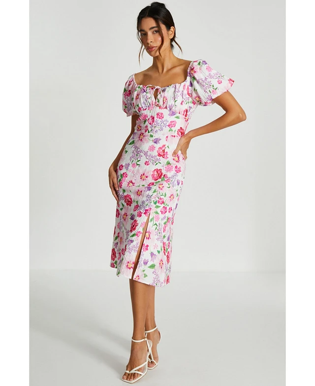 Quiz Women's Woven Floral Puff Sleeve Midi Dress