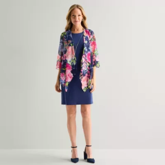 Studio 1 Womens Floral Jacket Dress With Removable Necklace