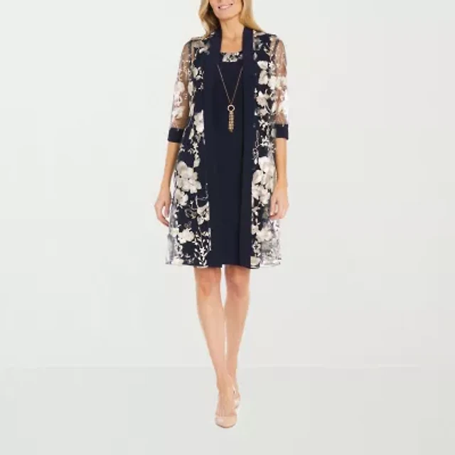 R & M Richards Womens Floral Jacket Dress With Removable Necklace Petite