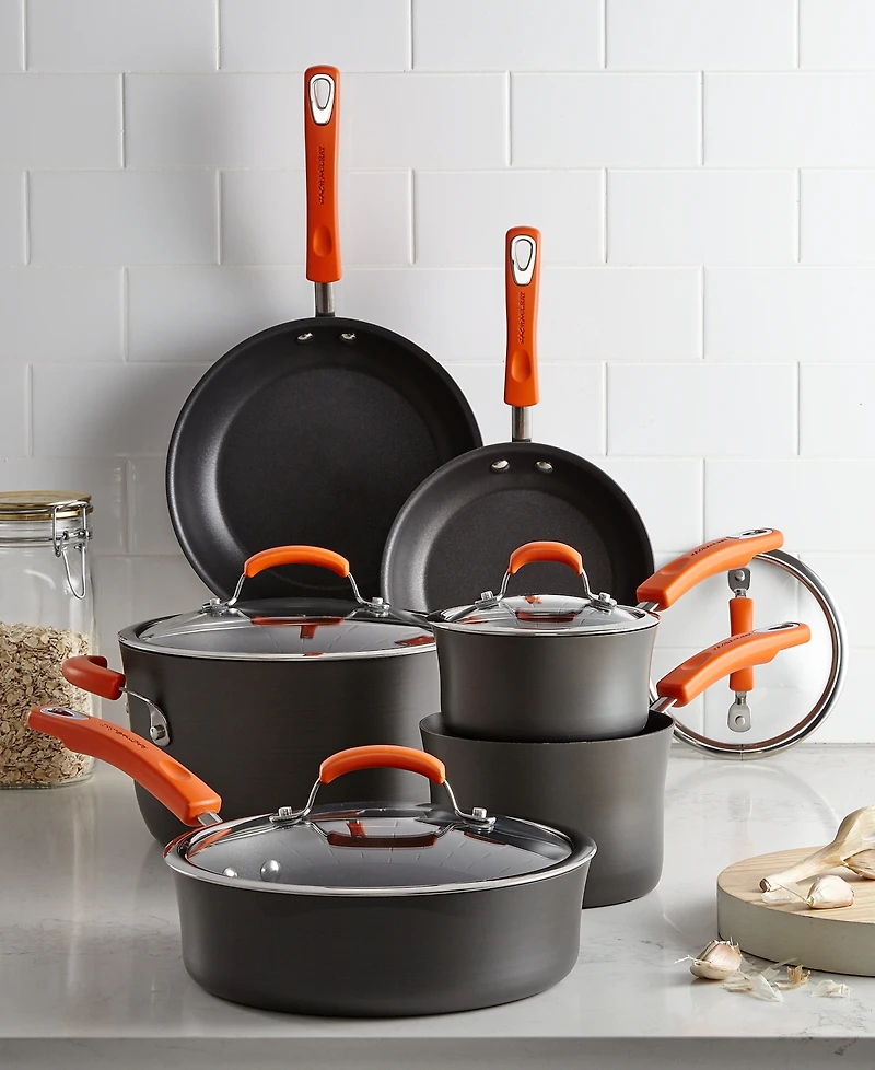 Rachael Ray Hard-Anodized 10 Piece Cookware Set, Orange
