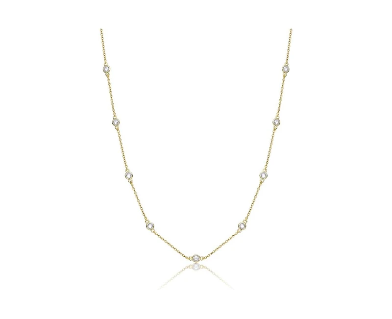 Rachel Glauber Classic Bezel Set Cubic Zirconia Chain Station Necklace