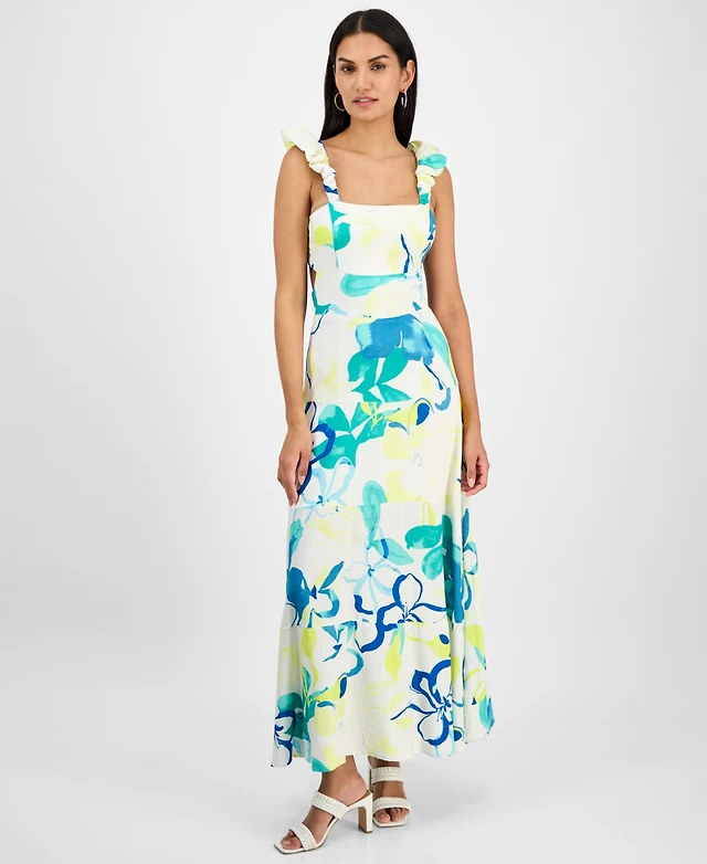 Kenneth Cole Women's Printed Ruffled High-Low Maxi Dress