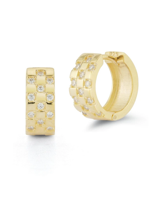 Rachel Zoe 14K Gold Plated Sterling Silver Checkered Bold Huggie Hoop Earrings