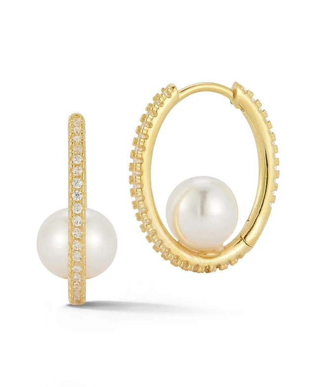 Rachel Zoe 14K Gold Plated Sterling Silver Pave Hoop Earrings With Pearl