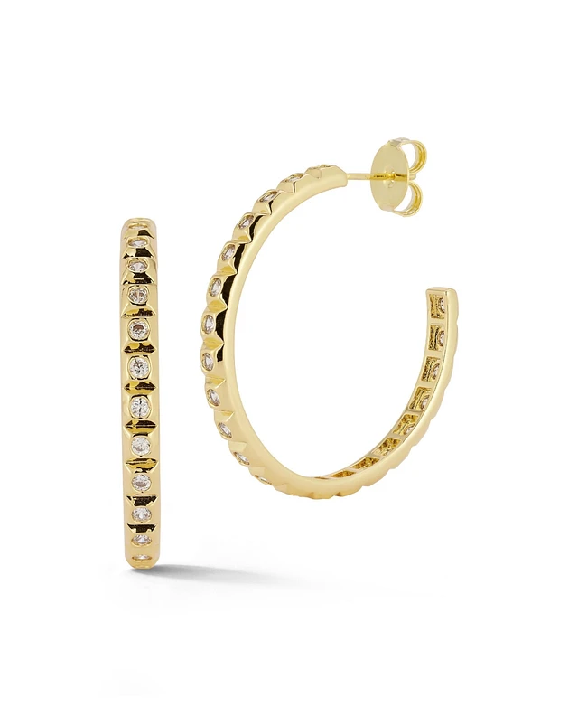 Rachel Zoe Gold Plated Crystal Round Hoop Earrings