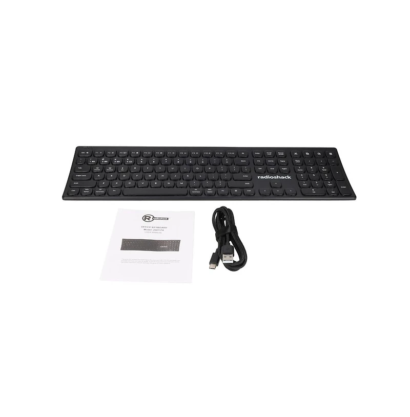 Discover the perfect balance of comfort, versatility, and performance with the RadioShack 3-in-1 Curved Ergonomic Keyboard (Model 2607174). Designed for tech enthusiasts and professionals who value efficiency and style, this keyboard transforms your typing experience with its innovative features and sleek design. Enjoy a full-size layout with 111 keys, including a numeric keypad and function keys, for complete productivity whether you re working on spreadsheets, coding, or creating content. The curved ergonomic design supports a natural hand position, reducing strain and enhancing comfort during long typing sessions. Slim, lightweight, and compact, it fits seamlessly into any workspace-at home, in the office, or on the go.