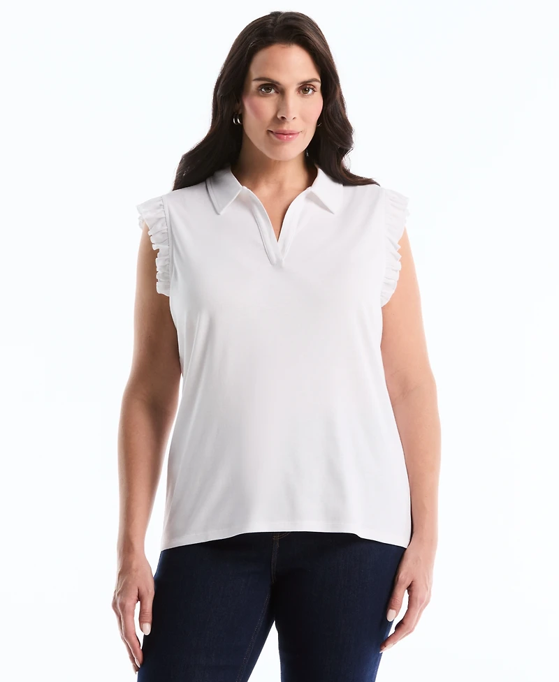 Rafaella Plus Ruffle Sleeveless Collared Polo T-Shirt in Ponce, PR