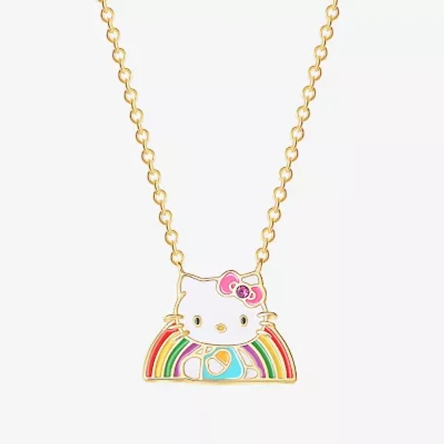Hello Kitty Womens Pink Crystal 18K Gold Over Brass 18 Inch Pendant Necklace