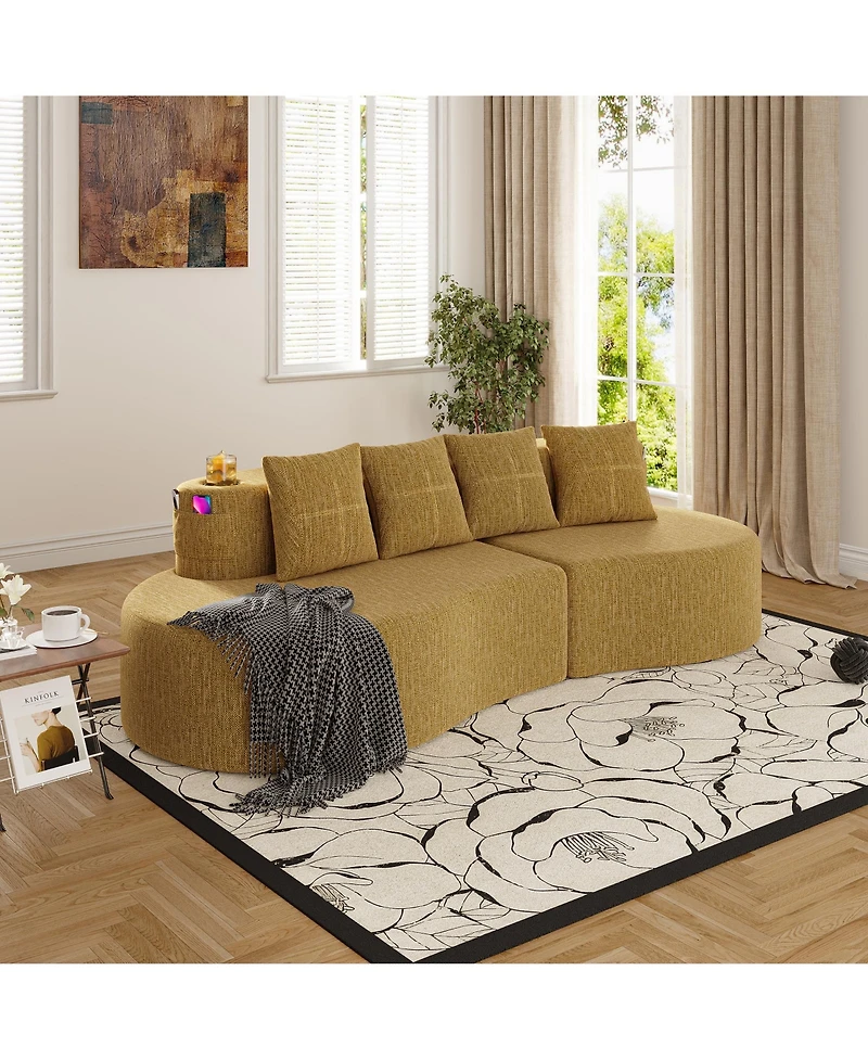 Rainsken Half Moon 3-Seater Sofa, Modern Modular Sectional Couch in Chenille Fabric, Featuring 2 Cup Holders and Side Storage Pockets for Home Use in Ponce, PR