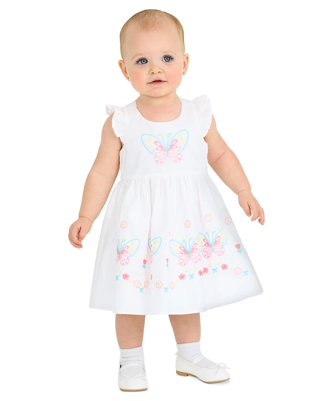 Rare Editions Baby Girls Butterfly Embroidered Dress