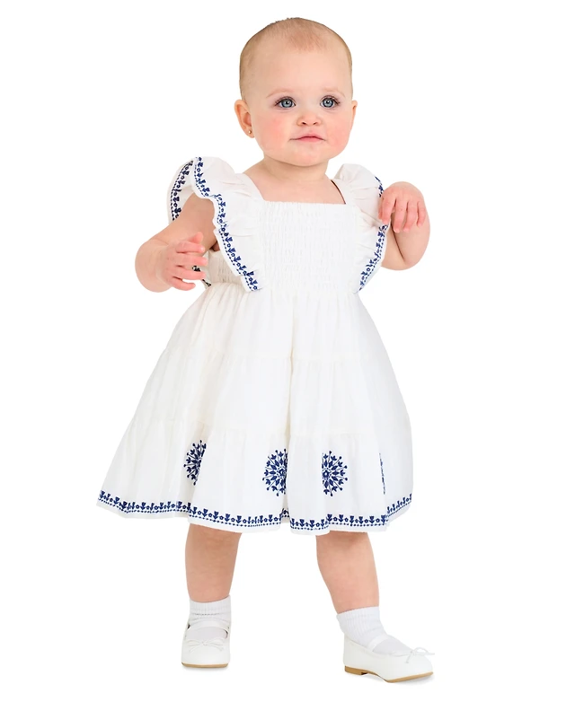 Rare Editions Baby Girls Embroidered Smocked-Bodice Dress