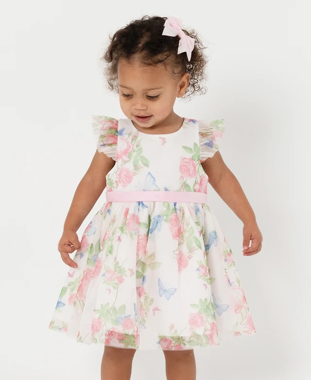 Rare Editions Baby Girls Floral Mesh Social Dress