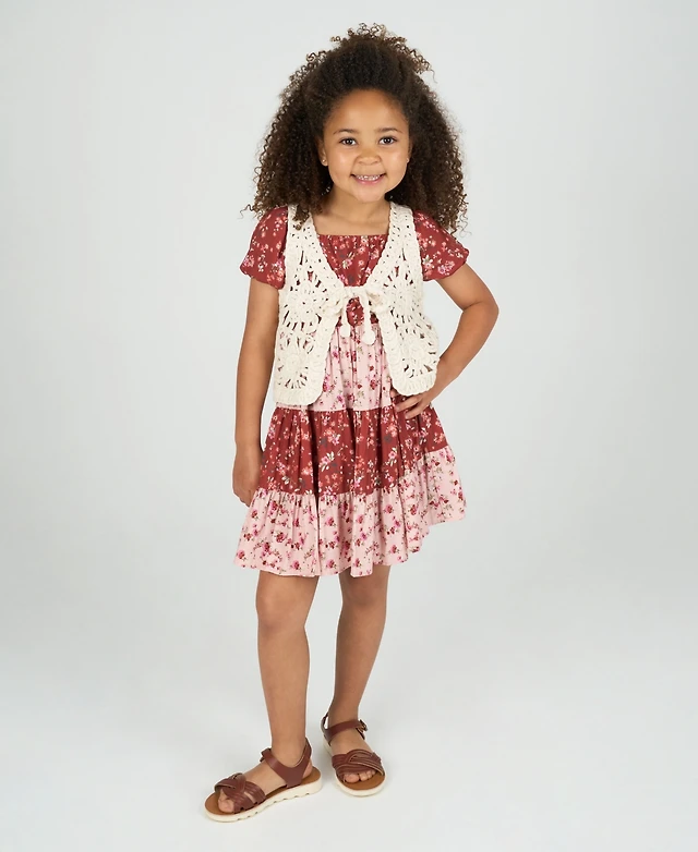 Rare Editions Little Girl Dress with Crochet Cardigan, 2 pc
