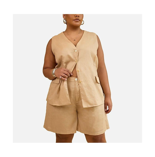 Rebdolls Plus Clio Linen Wide Leg Shorts W. Pockets