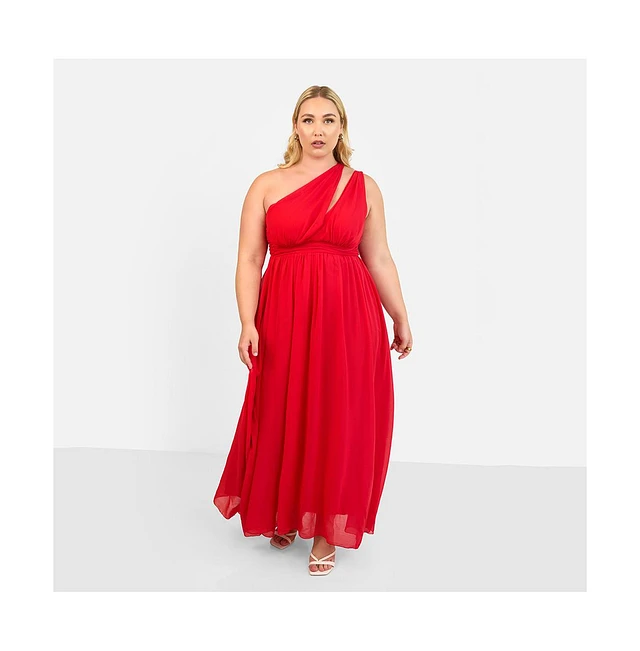 Rebdolls Plus Size Georgia Chiffon One Shoulder Maxi A Line Dress